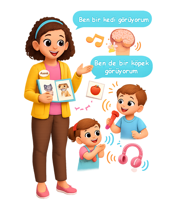 Asemli’deki etkinlikler; iletişim, dikkat ve öğrenme becerilerini desteklemek için terapi yaklaşımıyla tasarlanmıştır.